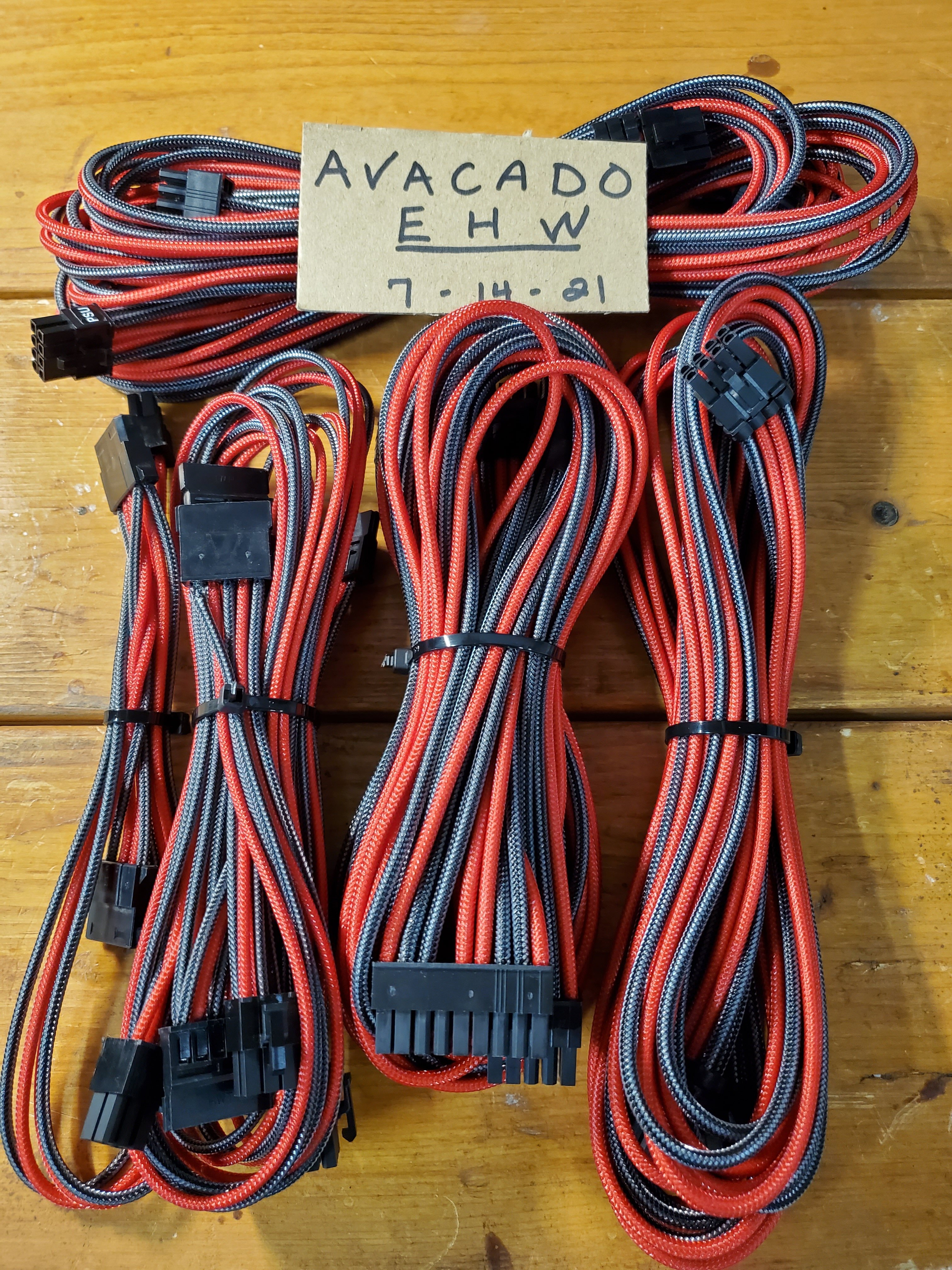 Up for sale is a used CableMod PRO ModMesh E-Series (EVGA) Red/Black PSU cable set. Comes with 1x24 pin, 2x 8 pin EPS, 2x 8 pin PCI-e, 1x 6 pin PCI-e, 1x 2 pronged Molex, 2x 2 pronged SATA, 2x 4 pronged SATA. 99$ new, asking 60$ shipped.