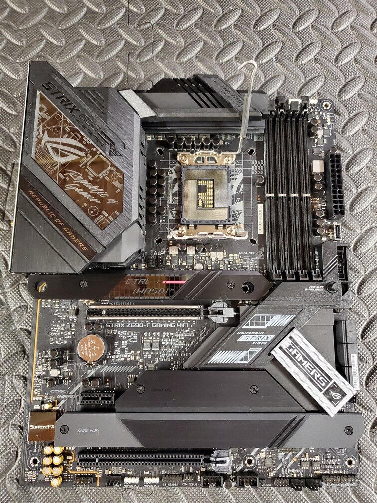You are looking at a used 12900KF (SP85) that has been delidded and replaced with liquid metal and a pure copper IHS from rockitcool. The board is an ASUS Strix Gaming F z690 motherboard (DDR5). Sorry, no RAM included in this sale. Free shipping to lower 48 states (US sale only). This is over $150 OFF the new price of everything in this bundle for tech that has been used <2 months!