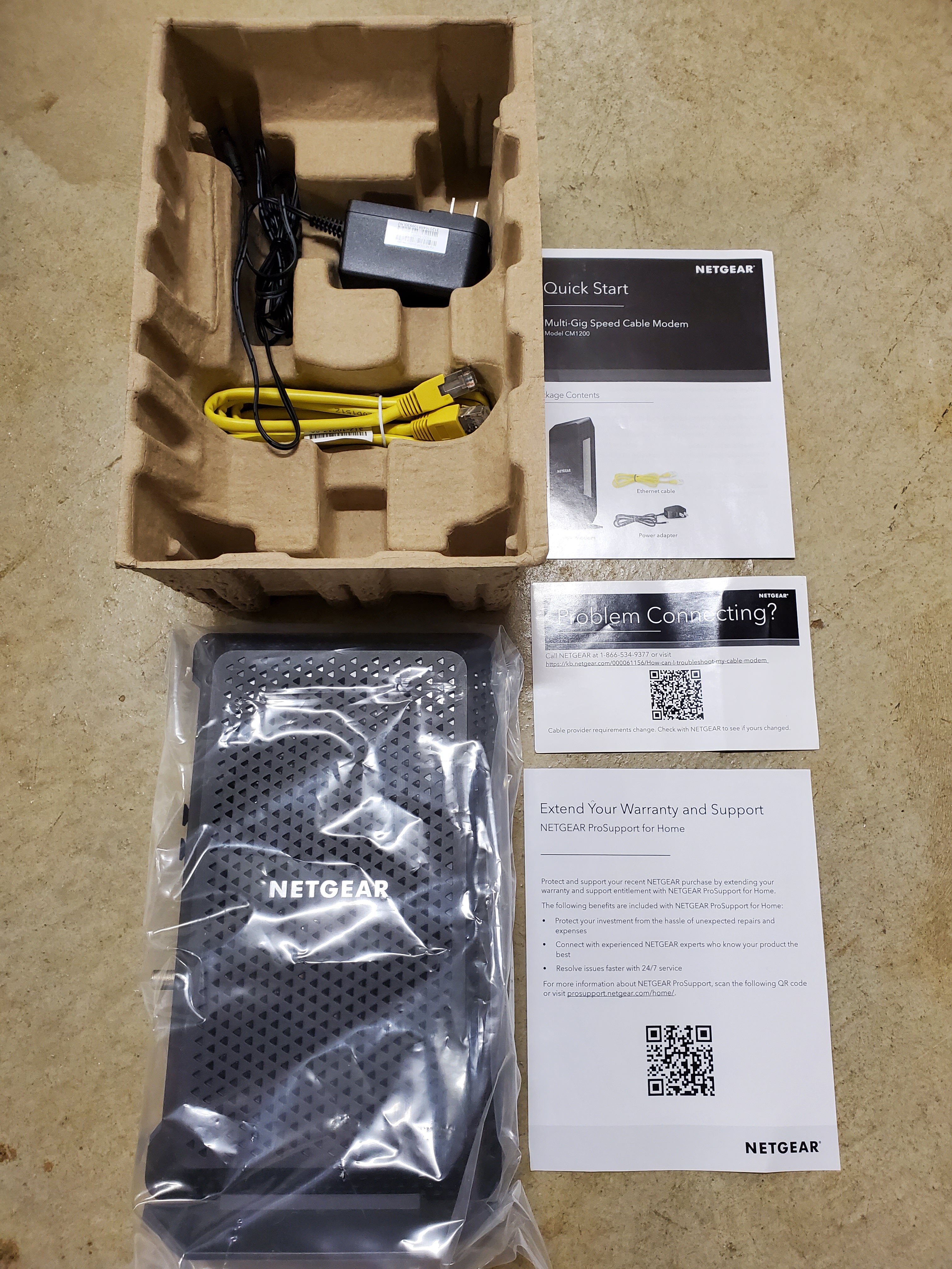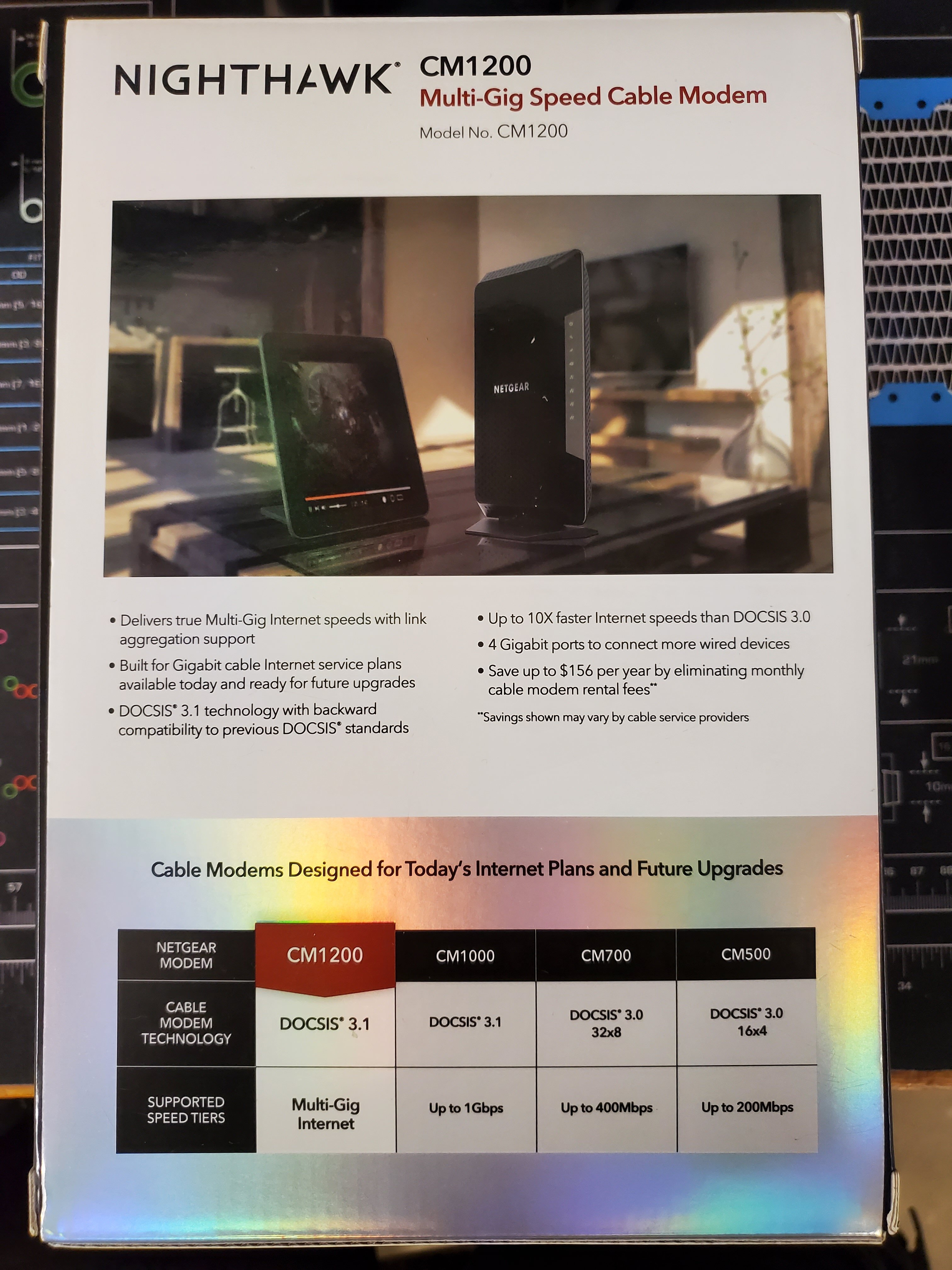 This is a used Netgear Nighthawk CM1200 Multi-Gig cable modem. Was used lightly for 6 months until fiber cable was laid in our neighborhood. These are going for $90 used on ebay.