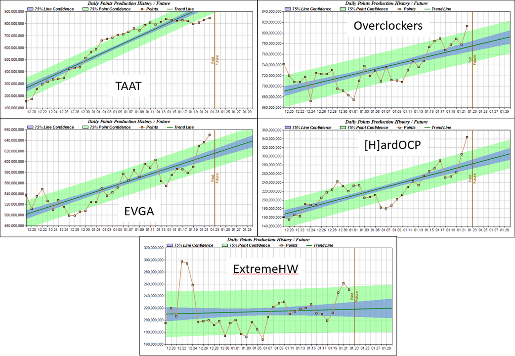 Our website has huge influx of bots scrapping our pages. Please logged in to your [H] account if you have any issue viewing the results. If you don't have an account, maybe someone from the team can copy and paste here. Apologize for the inconvenience caused. TEAM RESULT UPDATE (min every 12 hours) Rank Team Day0 Day0.25 Day0.5 Day0.75 Day1 1 Team AnandTech 0 225,517,555 459,576,948 783,824,175 1,198,436,909 2 www.overclockers.com 0 277,921,939 543,239,716 775,218,834 1,005,163,133 3 ExtremeHW 0 140,069,051 316,915,613 498,757,890 687,117,340 4 folding@evga 0 166,638,845 328,948,483 492,370,881 668,376,830 5 [H]ardOCP 0 108,725,663 214,954,422 327,165,999 451,353,984 % World Daily Aggregate 0.00% 13.89% 18.96% 14.65% 15.22% -