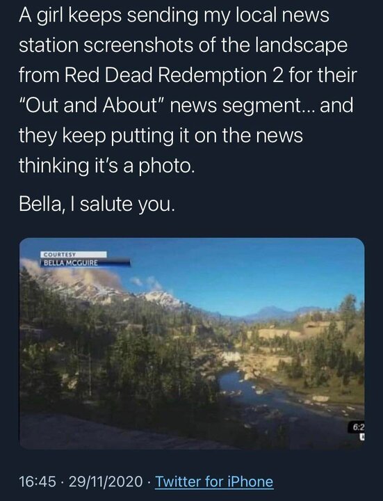 10. Someone keeps submitting RDR2 screenshots to an Oregon news channel for their Out & About segment and it keeps getting shown as real photos.