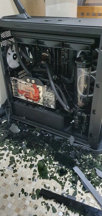 So was away for a week and moved my setup out of sight just incase if someone wanted to steal it. Stored it the washroom/bathroom. Once back home wanted moved my setup back to my desk. took the side panel off to make it lighter. The whole panel became a million smaller panels. I didn't knock it, I think it was little colded. The case is a Corsair 5000x, which came to market last year so thought I will be able to order a spare one. Corsair has none in stock, So new case for me right before the Christmas Hoildays!
