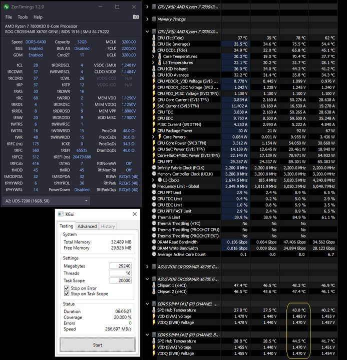 6400C28 tuned and at limit of vSOC. Required 50mV bump from GDM on for VDD, VDDQ, VDDIO, and tRDRDSCL=5.