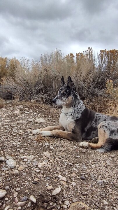 16. Just thought I'd share some photos from my current road touring adventures. My road dog. Blue heeler, Aussie/Sheepherder, maybe some other stuff. Definitely a dingo body when short shaved. Standing where the water used to be before declines (Palisades Reservoir, ID). Cool but, not cool, and pretty but not pretty. Obligatory Idaho Falls, ID, the falls. Massacre Rocks Balanced Rock Holidays with family. Cramped gaming style, compactness? Pro level. There's more but I'm lazy now. Stopped over in NorCal at buddy's place for a few. Back on the road soon. More to come...