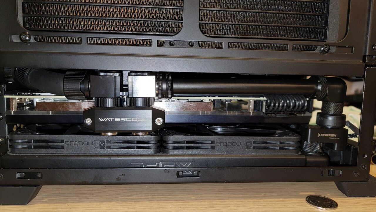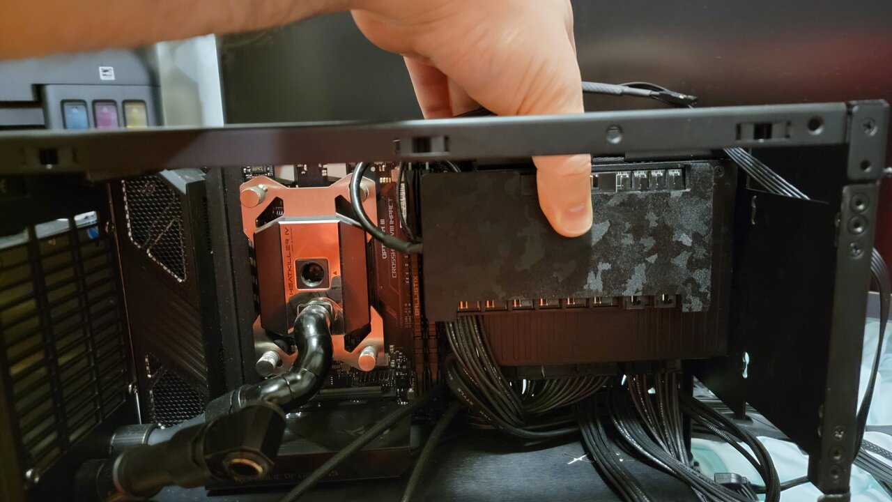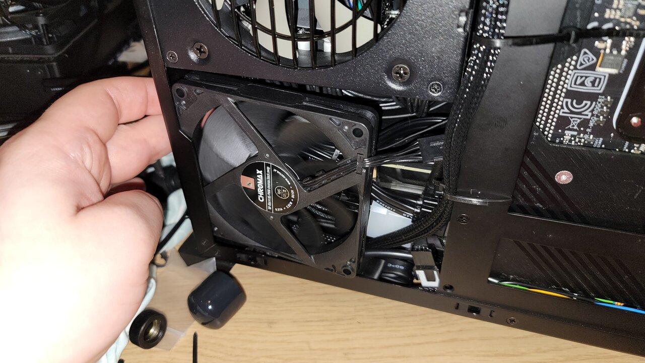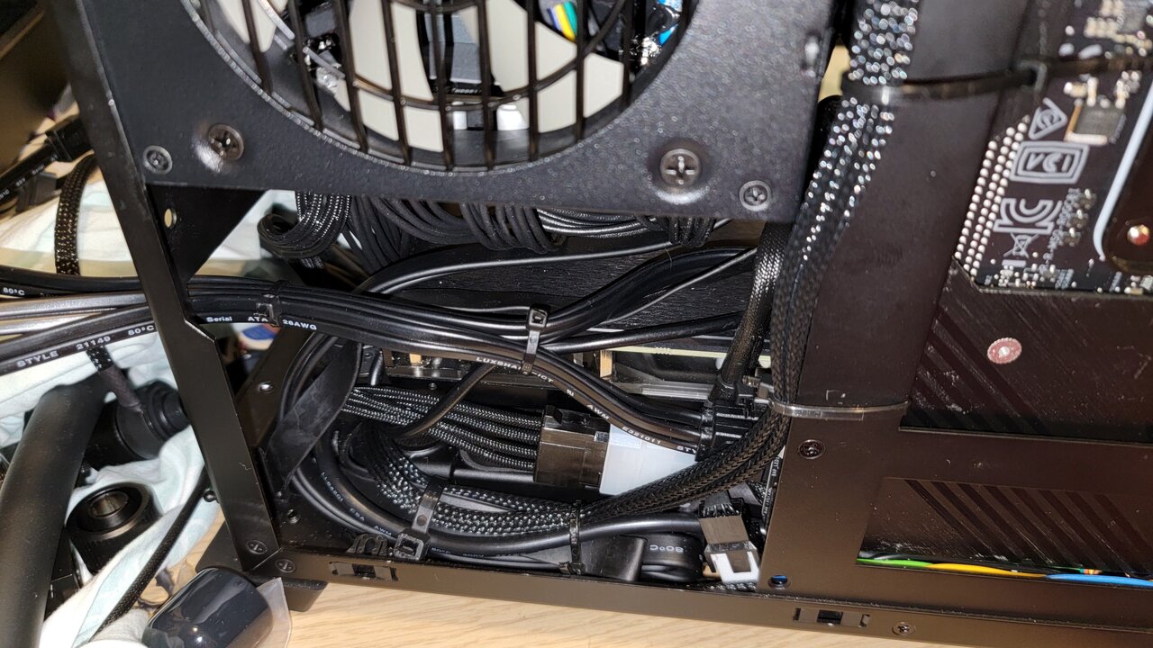 More tight fitting is being currently made before I cut last tube. I am hiding all cables and essentially cramming every last mm of space I have. I was able to implement 92mm fan on the bottom back it will be partly chocked but it will drag hot air from bottom rad and pulling a bit of air from front of the case. I am trying to hide ca les from pump, left over heat shink worked great, but all out oit and have stupid yellow cable I also got ears for case for wifi and Bluetooth I need advise what orientation I should put commander, horizontally or vertically
