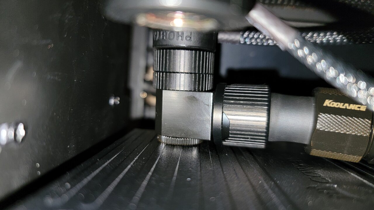 The good and the bad news. Well the good news is all is done connected and hooked up... and evenly power button working. The bad, well he he, those offset fittings in the bottom both leaking where they connect to thermal probes. And it only looks like leakage happening when on. Will try to see if they loosen up or o ring not making connection Ow well almost there just few more days