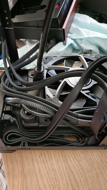 There is an unfortunate developments happening with build. A. Screen either needs go on outer case or be returned, unfortunately it is no possible to install it anymore inside the case. If to install in outer case. I'll need to set up an entire outer case at which point, I'll order entirely different screen from aliexpress. B. I might need to cheat on metal tubing and install soft tubes for side rad as I'm completely clueless on how to approach latch system of inside case. With all cables it is getting really tight inside C. My custom cables arrived from China, but guy forgot to sent me one cable, so I'll have to wait for new delivery from china.. Couple of pictures from my evening walk and some early fitting times.