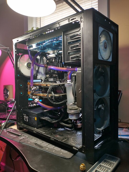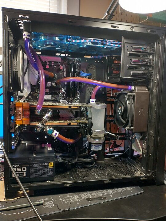 8. Also should mention the only thing coming over from the V1 scrap pile is the PSU and pump. The old 750D is getting scrapped. I have a couple new cases to pick between. I'll get some photos with both and make a decision soon. Going to run dual 360mm rads, gold monsoon free center compressions since there aren't many copper colored fittings, and Tygon A-60-G. Pulling one of the 32gb B-die kits from my main rig since I no longer do a bunch of work stuff in VMs and don't need 64gb.