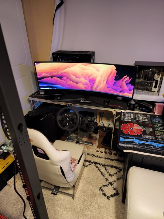 10. The seat/frame I have is enough of a cockpit for me. The 7970s are fine in Asseto Corsa but lacking big time in stuff like Forza. For the short term I have a waterblocked GTX 1070 I'm going to swap in. I might snag a 6900xt depending on how the prices drop before RTX 4XXX series. Forgot to mention I have a Samsung CJ890 Series 49-Inch Ultrawide for the setup too.