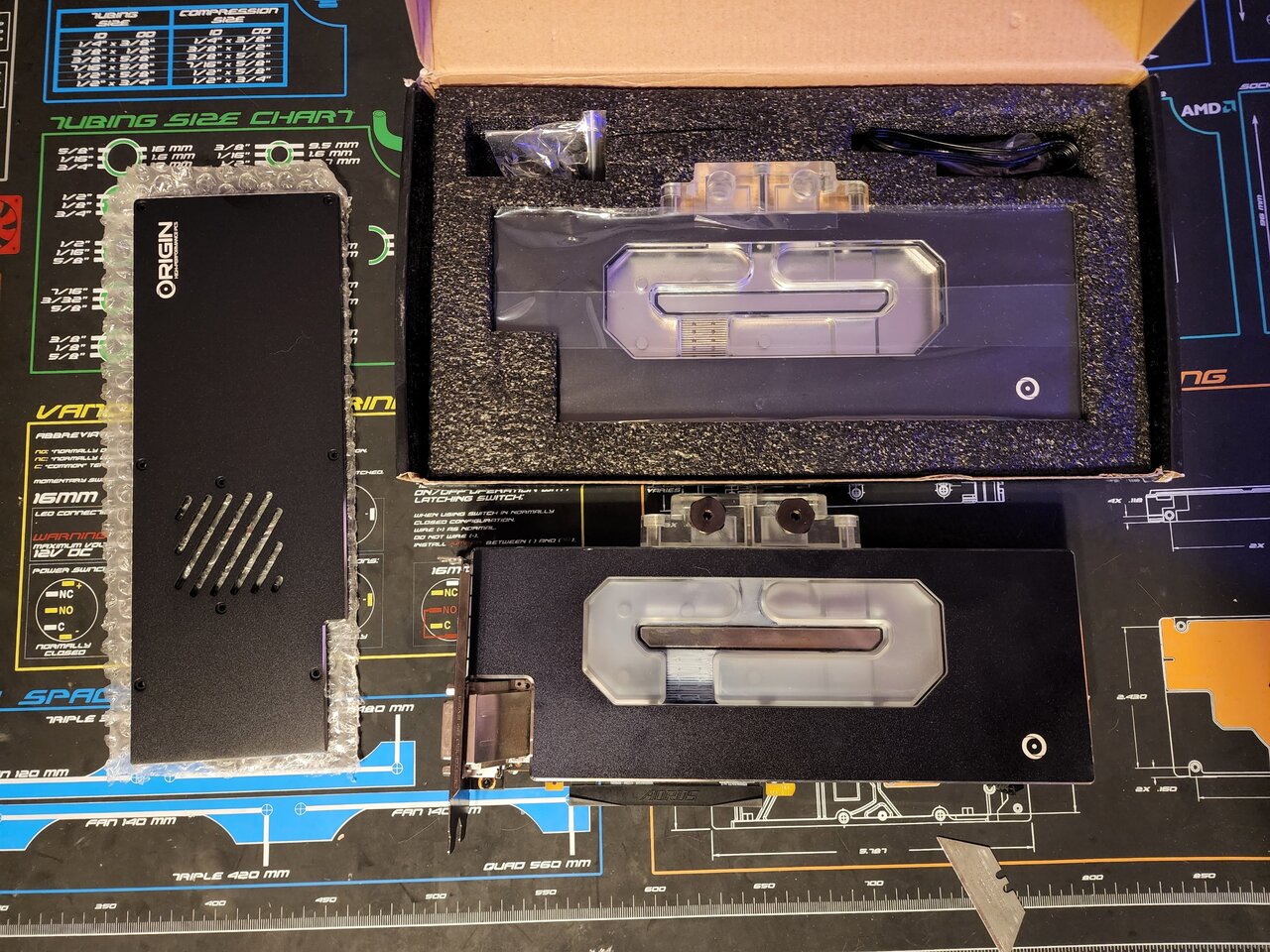 4. The tablet is a MS surface my buddy saved from the work recycle bin. I figured I'd use it for looking stuff up while using the workbench but my main PC is in the same room so the surface is basically just a desk clock lol. I love Monsoon fittings. That stack is all the angled adapters that are matched to the OD of their free center compressions that I already have for this build. Bring all the beer you want, I'm always down to party. I bought that stool off craigslist in the ghetto when I lived in Georgia. When I pulled up the guy selling it could tell I wasn't from that neighborhood and told me I best hurry on home IDK what gave me away... Probably looked a little something like this. Dug out the 1070 I'm borrowing for now. My boy apparently never heard of the word maintenance . Conveniently have a spare NIB Origin PC branded Swiftech Komodo block. bought a whole stack of these years ago cheap from some reseller on ebay. Honestly don't know if I'll even bother cleaning the dirty block. When I sold my last 1080 with one of these blocks, couldn't get any interest. Ended up swapping back to the FE blower and tossing the block in for free "Just in case the guy wanted to watercool in the future".