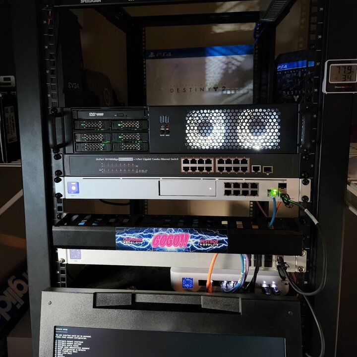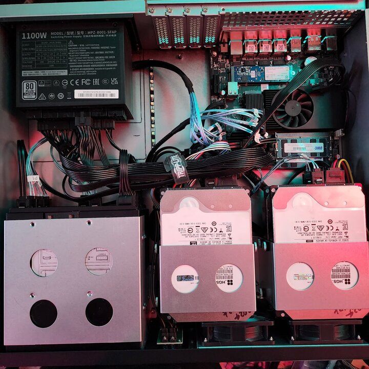NAS update time. In the 2 years since this was posted, I had one drive start to go bad. Replaced it with another cheapo used ebay special and it resilvered and has been running fine. I also swapped the RAM for a 2x16gb kit somewhere along the way. I only worked till noon today because I needed to go to the DMV. Was in and out in just a few minutes for once so I spent some time this afternoon throwing another NAS together. I actually bought the motherboard about a year ago and briefly played around with it with just the SSDs. Got busy and it all just sat around . At the heart of it is a CWWK ITX board with a Celeron J6413. 32GB of RAM Optane P1600X boot drive Cooler Master V1100 SFX PSU that I reviewed a while back. Silverstone M.2 to 5x SATA adapter + the 6x built in SATA ports. ICY DOCK Tough Armor 5.25 bay drive adapters. Currently has a pool with 4x Intel DC 1.6TB SSDs in striped mirrors. Plan on getting two more 1.6tb SSDs and testing if it's worth doing 3x striped mirrors or 2x raidz1 vdevs. The spinning rust is a separate pool with 3x 10TB in Raidz1. This is just setup to replicate the FluxData NAS. It's all housed in a Rackchoice 2u chassis. Not as tidy as the OG, but clearly zero provisions for cable management in this case. Had to pimp it out a little bit. Swapped the crappy stock fans for some Gelid Silent 8 PWM and stuck a couple white LED strips in the case. Installed TrueNAS Scale. Created a LAGG with two of the 3x 2.5GB NICs. Tossing stuff at it from two different PC's simultaneously I am seeing just shy of 5Gb on the LAGG. The idea is to just have a SSD pool to work off of when I'm doing things between multiple machines. When I'm done with whatever, it gets moved over to the original NAS. I recently picked up a USW-Aggregation switch. So I'll eventually put more stuff in the rack with 10Gb NICs and then in a year or two I'll probably build a faster NAS