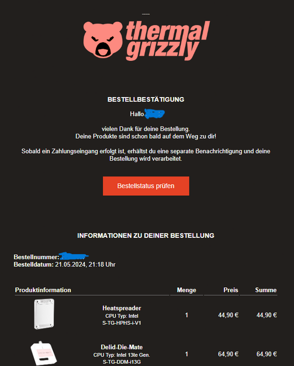 Just got an email from Thermal Grizzly: Dear Thermal Grizzly Customer, Based on recent feedback from a small number of customers, we would like to bring the following to your attention: During the installation of the Intel Mycro-Direct-Die and the Intel High Performance Heatspreader V1, it may occur that the desired cooling performance is not achieved. Ensure that the optimal cooling is indeed reached. If you find that the performance does not meet your expectations, we kindly ask you to send an email to [email protected] so we can find a satisfying solution. The email should include the following information: -Which cooler are you using? (if using the heatspreader) -Which motherboard are you using? -Which thermal paste or liquid metal are you using? Photos of the components as well as before/after screenshots of the temperatures under load would help us better to judge the current situation. Our engineers are working hard to find a solution. For further questions or more information, our customer service is at your disposal. Mit freundlichen Grüßen / sincerely Thermal Grizzly Web: www.thermal-grizzly.com Support: [email protected] Sales: [email protected] It didnt arrived yet but this is not taking my hopes high... But lets see... On the other side i appreciate the "case handling" of them, have to admit that its a legit approach... Ill keep you posted...