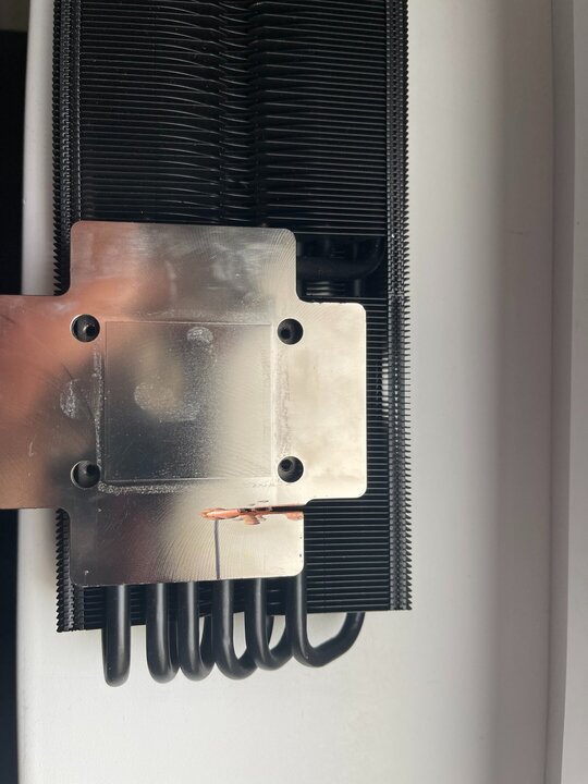 So im reporting back... Its as well like in RL - one success and one fail.. Im going to share both of them.... The success is that first i tried just to replace the stock fans, did it a bit Ghetto style as a first prove of concept: and here are the results: stock fan temps and Ghetto mod temps: Difference of 4-6 degrees with the same RPM and way more quiet? Jackpot! Summer can come lol.... Next to the Morpheus - it doesn't fit ... One module is in the way of the IHS of the cooler as its as well cooling the ram modules and 1 specific module R68 is blocking to fit there.... So i thought OK then lets cut of the unnecessary piece of copper with the motto "what doesn't fit, you make fit" but yeah fail... i came to a conclusion to fast, should have take better look at it...its exactly the point where the heat pipes are melted to the plate and i cut in to 2 heat pipes.. so after i can look at it again i will probably cut it in half and make a nice decoration out of it lol.... "Memmento Mori" i just killed a new cooler lol... At least i can confirm the Quality of the cooler and that the plate is pure copper