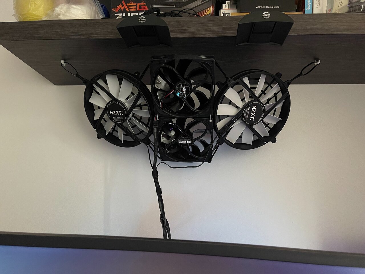 Just wanted to share Well i still have some stock fans which are just in the box and ofc after some years of "building" computers you gather a fair amount of HW which becomes kind of obsolete but you don't want to throw it away as it works. Trying to sell it is mostly an effort which turns out to be a energy and time burner. So i just thought what to do out of it.... And hey Fans are meant to cool HW - so why it could not cool me? Not having an AC bcs i get mostly a cold from it... And a classic fan has a problem that even on the slowest speed it becomes kind of too much "wind" after a while and annoying (mostly in smaller rooms).... I got 1 desk fan powered by USB - its not bad but not enough when the summer hits my HO/Gamer room which is just 3mx3m ... : So i dusted my old Fan controller: Connected it to a molex extendercable to my PC and some fan extension cables and biuld my first "Drone-like" personal FAN: Now to be honest im rly very positive how it turned out, it does not blows you away but its makes a gentle breeze. An here is a Pros vs Cons summary: Pros: 1, upcycling - not creating unnecessary E-waste 2, It fulfills my expectations way better then expected 3, its not louder then my case 4, the energy consumption is around 12W (don't have a way to separate the measurement just on the Molex and measured it with a watt meter on the whole case - idle turned on and off - difference is the result) 5, its one of its kind 6, - just my personal thing - but i like the ghetto look and anyway i like to watch fans spinning Cons: 1, DIY P.S. - would be here enough brains for a upcycling thread?
