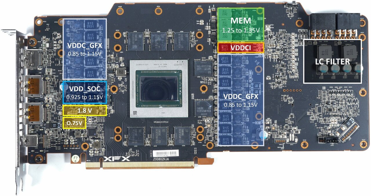 yes exactly the "flaps" are new. but what irritates me is that the R68 module is the same as on the reference card but i suppose its "higher" and blocking the Morpheus flaps... Dont know its simply preventing the cooler to "sit down" to make contact on this side.... here is the reference PCB: Here the XFX PCB: and here the teardown with the XFX cooler and take a look there is a "cutout" for the module in the cooling plate...