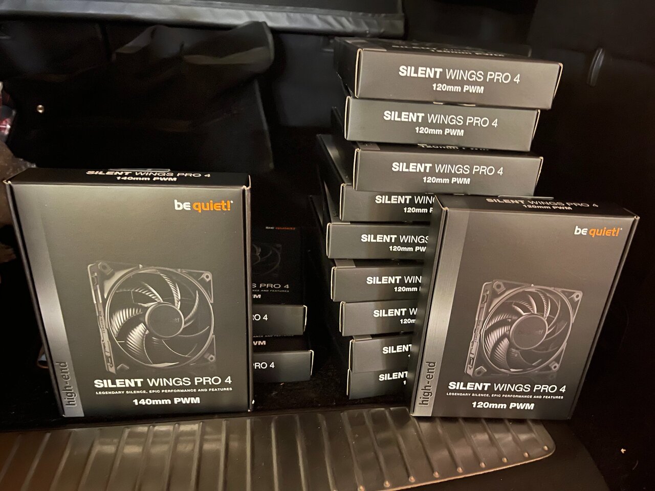 I got a deal i could not resist: used fans but with the following conditions: 10 x Be Quiet Silent Wings Pro 4 120mm (6 x of them not even opened and used) 3 x Be Quiet Silent Wings Pro 4 140mm ( 2x of them not even opened and used) On the used one no dust, no scratches and the bill is from 02/2023.... All together for 216 EUR (shipping fee included ) Impossible to resist! Or am i just WEAK?
