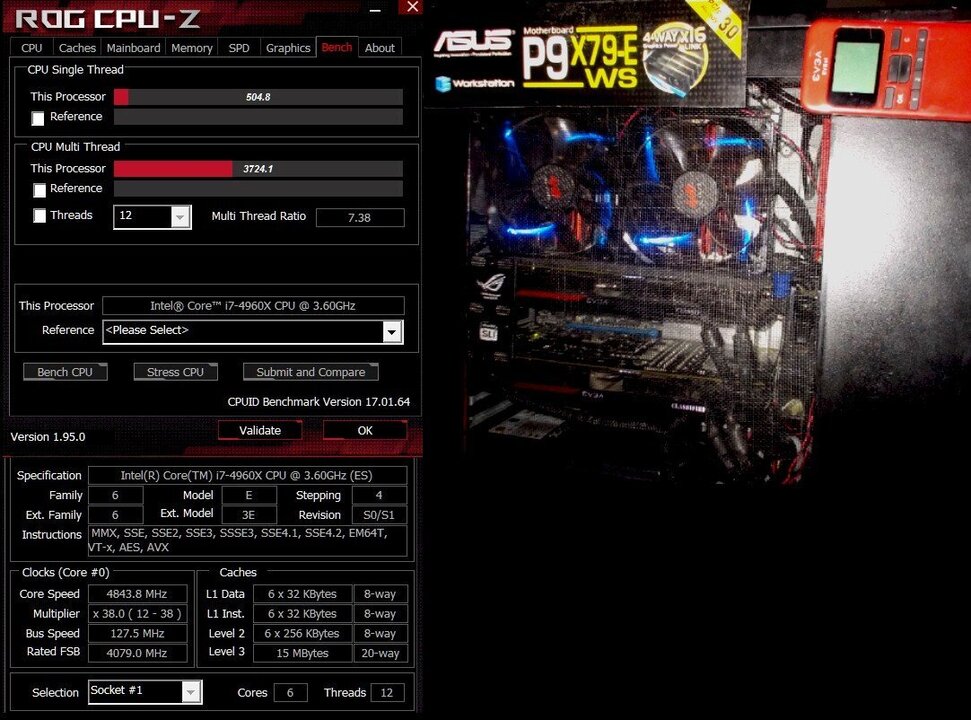 4960X ES -- multi core 3724.1 -- single core 504.8 --- 4.84 Ghz