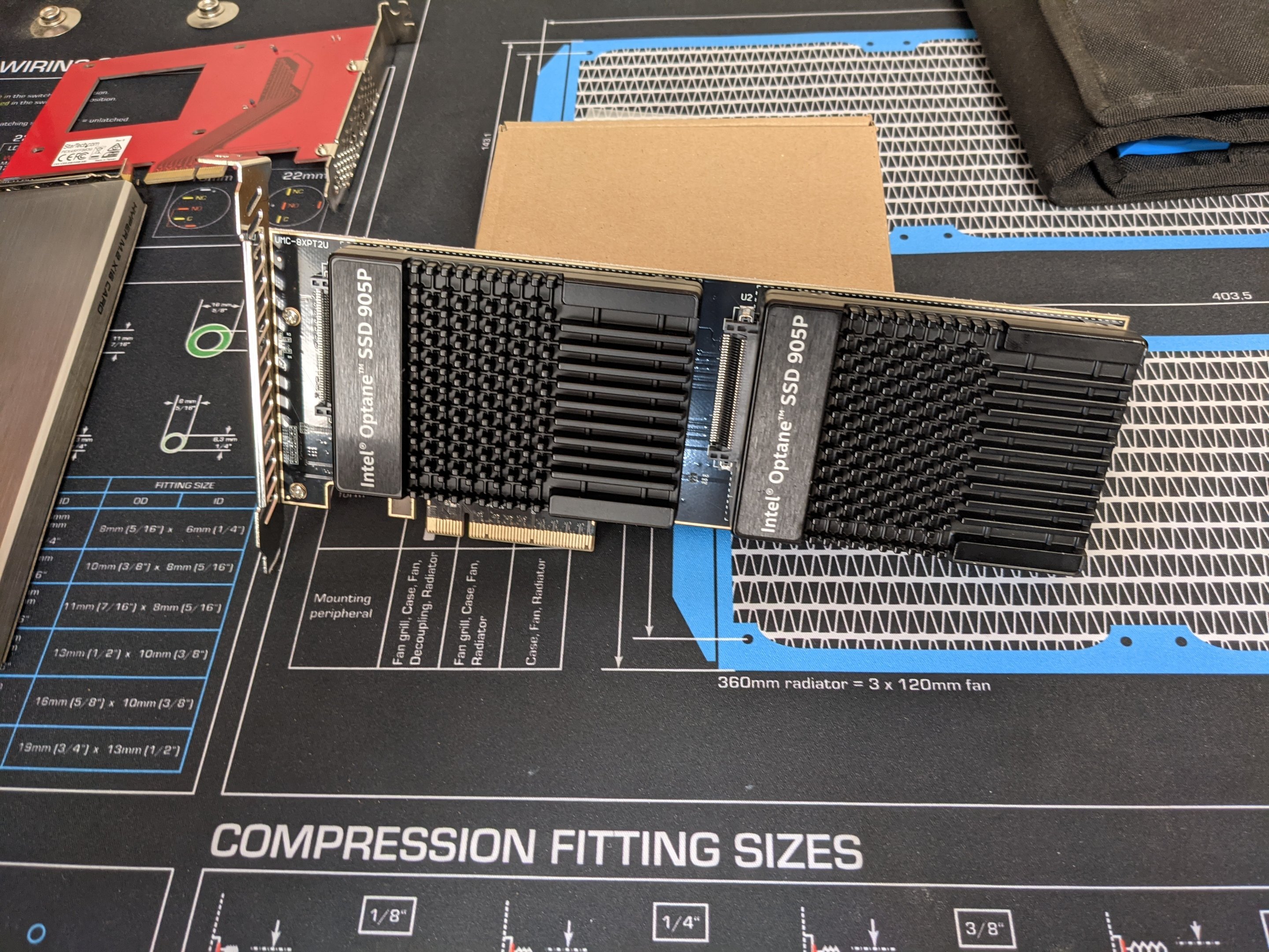 Ah, nice. That looks like a good setup there. In my case I could probably dedicate a PCIe slot for the cause, eventually my MP34 will become unhappy.I'm curious since you're running these on a PCIe card, how hot do they get under heavy write workloads?